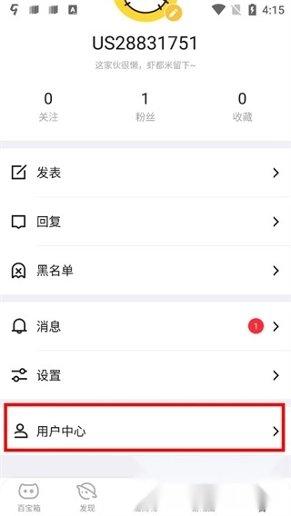 2、在我的页面中进入“用户中心”