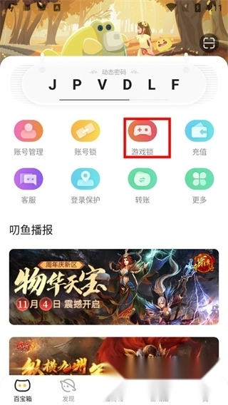 1、在安粉丝完成后,打开盛趣叨鱼,点击“游戏锁”