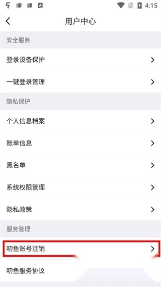 3、往下滑动就可以看到叨鱼账号注销了;