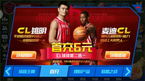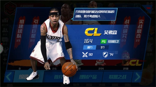 游戏开局时,系统会让玩家选择一名球星作为主力,可选的有中锋P.加索尔、控球后卫卢比奥、小前锋阿德托昆博、得分后卫比尔和大前锋乐福。这里特别推荐大家选大前锋乐福,因为他的篮板、强壮和速度属性都能满足获取艾佛森的条件,而且后期首充6元获得姚明后,整个队伍的强度会非常可观。