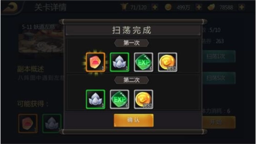 最后,通关副本需要消耗一定体力,而扫荡功能,除了消耗体力,还需要消耗扫荡券才能进行。玩家们在沉浸于游戏中的同时,别忘了时刻关注一下自己的体力与扫荡券数量。如若不足,请及时通过元宝购买、礼包奖励、好友赠送、任务领取等途径补充哦!