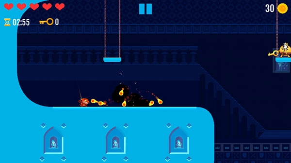 进入游戏后,左侧用于操控角色的弹射移动,右侧则负责发射炮弹。