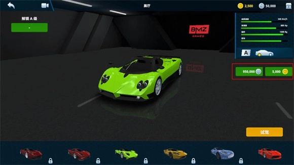 3、选好心仪的车辆后,右侧会显示具体价格,花费对应的金币就能解锁该车辆。