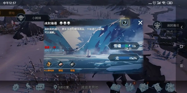 冰冻森林:有少量怪物,难度系数较低,主要产出铁木、木头、冻肉、兽皮,去前记得带两把铁斧和若干石头。