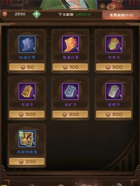 4、荣耀币、主要获得来源校场比武跟番邦来袭,主要是购买加速以及各种资源令,每天也是给的溢出,资源令前期升官阶有用后期就是摆设,屯田那点资源可有可无