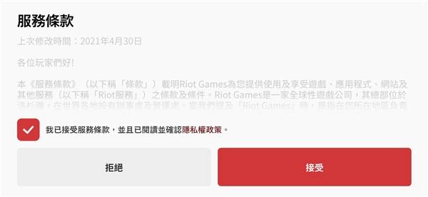 6、完成后勾选服务条款,选择接受就注册好了。