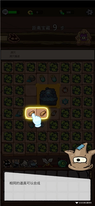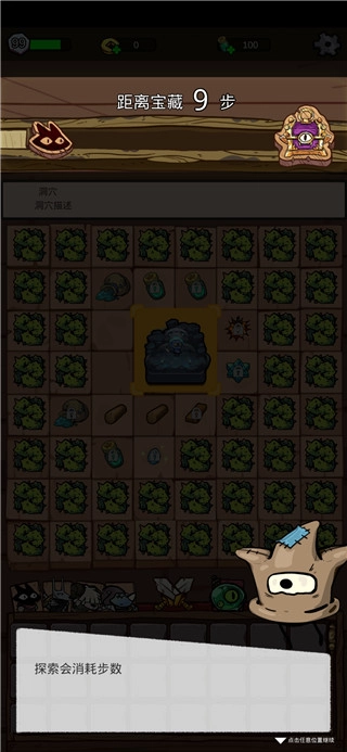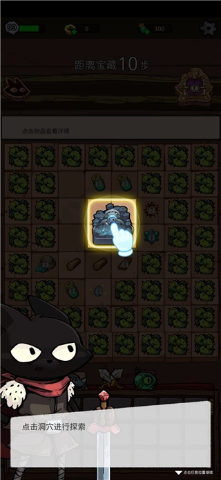 1、开始游戏后,点击地图上的洞穴进行探索,每次探索都会弹出额外的道具。