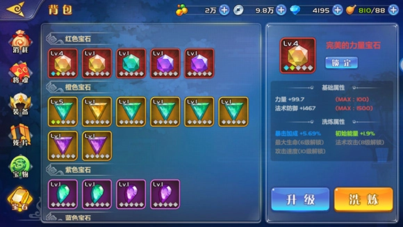 因为每个宝石的洗练属性类型是不能改变的,因此,获得一个拥有多条有效洗练属性类型的宝石,是对战力最大的提升。