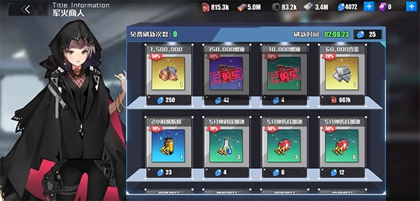8、军火商人一天免费刷新两次,我推荐你刷到100钻单次,这里买资源非常的赚,无论是加速还是道具。