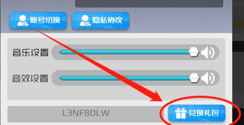 3、然后点击设置窗口的【输入兑换码框】输入礼包码。