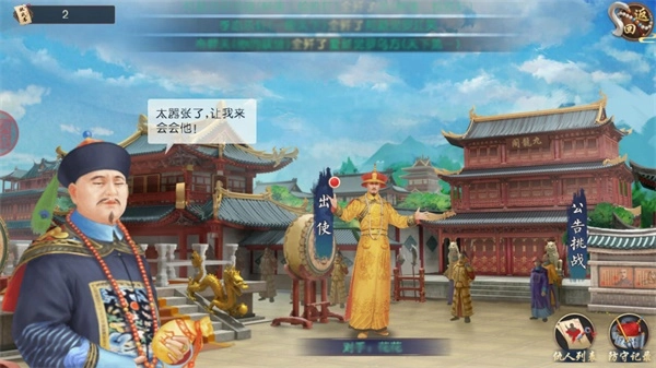 接下来就是叫我万岁爷挑个“软柿子”来捏啦~每一轮论战系统会随机给出对方的3位大臣,圣上需要选择其一进行论战。圣上可以看到对方大臣的爵位,优先选择未封爵的大臣进行挑战。