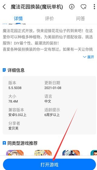 3、这里小编选了魔法花园换装游戏,能看到已经改成大量金币和钻石了,接下来点最下面的就行。