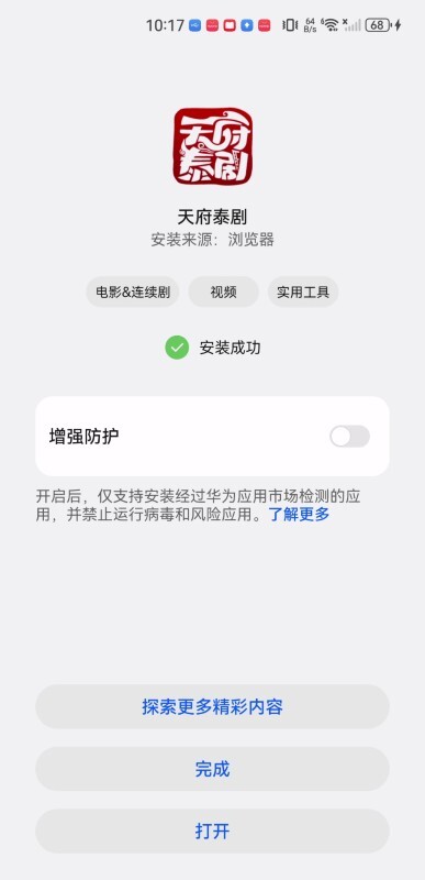 5、最终,出现绿色对号,说明“安装完成”,点击打开,即可体验。