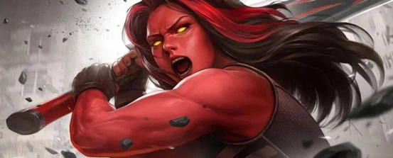 伊丽莎白·塔尔博特·罗斯-班纳(Elizabeth Talbot Ross-Banner)是红巨人罗斯将军的女儿,同时也是绿巨人布鲁斯·班纳的妻子。她曾不幸死于恶型怪之手,后来以女红浩克的身份重生归来。她具备吸收各种形态放射性能量的能力,还能将自身的愤怒转化为强大的超人力量。