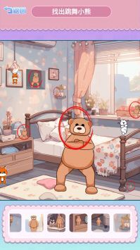 1. 寻找小熊:在每一个关卡里,玩家都得找出所有正在跳舞的小熊,这些小熊各自藏在不同的角落,得靠玩家的眼力去搜寻。