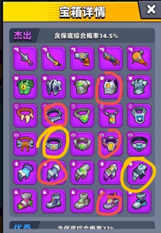 武器 技能 突破装 棒球棍 健身指南 露希尔 板砖 健身指南 铁哑铃 火箭发射器 高爆燃料 鲨嘴炮 力场发生器 功能饮料 压制力场 钻头弹 弹药推进器 哨箭 守卫者 外骨骼臂甲 捍卫者 雷电发射器 能量块 狂雷电池 足球 运动鞋 量子球 A型无人机 B型无人机 毁灭者 回旋镖 强力磁铁 磁力镖 燃烧瓶 石油债券 燃油桶 棒球棍 血量上限 狼牙棒 左轮枪 攻击力 双发左轮 散弹枪 攻击力 加特林 大刀 减伤衣服 吸血 苦无 经验 无限追踪A飞行器+B飞行器