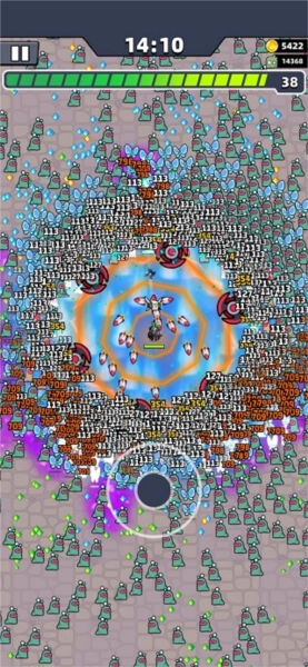 2、【轮盘+火箭+领域+燃烧瓶+闪电】这套组合在前期确实能制造出真空领域,让怪物无法近身,但从13分钟开始的两波攻势肯定扛不住——领域的减速效果起不了作用,燃烧瓶的伤害又偏低,除非你能靠数值优势强行碾压。