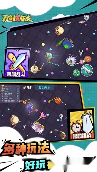 游戏包含两种模式:极限乱斗与限时挑战。在极限乱斗模式下,玩家将在开阔场地展开对抗,通过持续击杀其他玩家和拾取经验球获取经验,进而升级解锁新角色。而限时挑战模式中,玩家需在限定时间内尽可能消灭更多敌人,以此解锁更高级别的荣誉徽章。游戏里,你可以化身神话角色,手持刀剑与其他玩家竞技;成功击败对手后,自身或许会发生进化,拥有全新身份。通过不断吞噬能量、击败对手来改变角色,累积战绩,最终在决赛中脱颖而出。