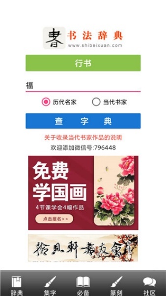 1、这款软件里收录了众多历代经典书法名家的墨迹,是广大书法爱好者练字时不可或缺的书法词典。