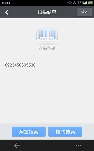 3、扫描商品条码后,可进入网页搜索,也可以添加到输入框,还可以去搜狗搜索一下比价格: