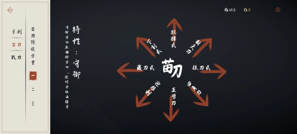 ③从3品到1品的阶段,会遇到各路高手使出五花八门的连招,此时苗刀的连招需要开始融入滑步(闪)来取消招式的前摇与后摇,其中最实用的是←滑↗这一招式,而↙和↖也要开始运用起来了——↙的变式能显著提升苗刀的操作上限,↖则是防御时长最久且前后摇最短的招式。这两招十分考验时机的把控(这个阶段可以刻意在实战中承受攻击,以此练习拆招技巧)