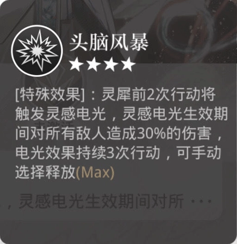 (2)头脑风暴:群伤,持续3回合,必触发,一局最多触发2次。
