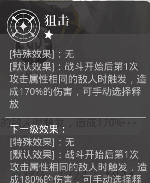 (4)狙击:遇到同属性触发,造成单次百分比伤害,无次数触发限制。