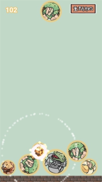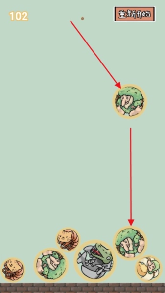1、游戏的上方会不断出现各种不同的怪物,当出现相同的怪物时,它们可以合成更高级别的怪物。