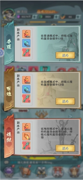 首先是有15层,每胜利一次可以选一个buff,15层挑战完以后解锁自己的心魔,这个心魔的属性以15层打完的属性定的,不同难度不一样,但是buff不会继承,所以其实就是需要靠选buff来打过属性比自己好的心魔。
