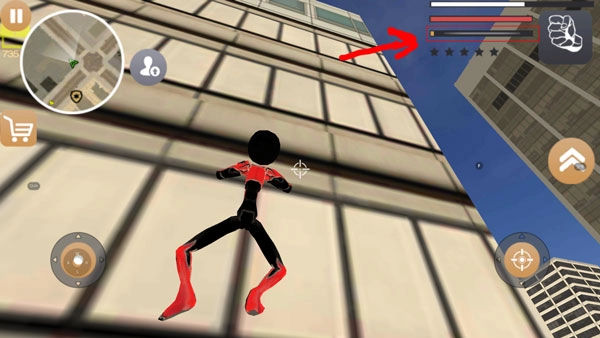7、注意,这里显示的是耐力条。一旦耐力消耗殆尽,你将无法进行奔跑和发射蜘蛛丝的操作,所以使用时要多加留意。