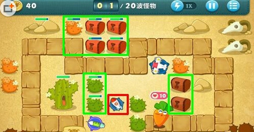 8、使用集中火力,所以太远的炮塔可以考虑出售,然后完全清除绿框中的障碍物。