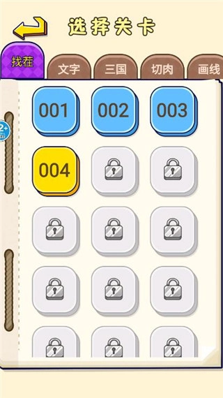 2、这里设有大量可供挑战的关卡,并且划分成了找茬、文字、三国等不同类型的玩法模式。