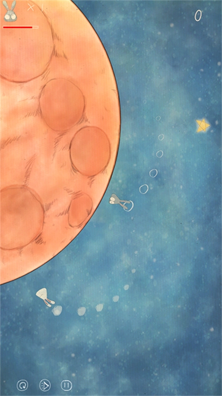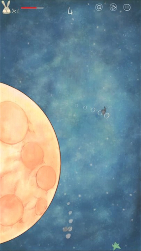 3、玩家控制一只兔子和另一只兔子绕月球追逐转圈,两只兔子必须不断相互触碰以维持体力;