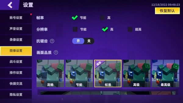 2、在游戏开始前可以点击右上角设置按钮调整一下游戏画质、音效、操纵方式等;