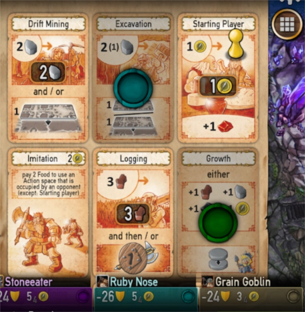 在乌韦·罗森伯格(Uwe Rosenberg)设计的《洞穴农夫》里,玩家会成为矮人部族的领袖,引领族人在隐秘的山洞里生活。从最初的小型洞穴开始,一步步拓展生存空间,与此同时还会探索山体深处那些尚未被发现的资源。