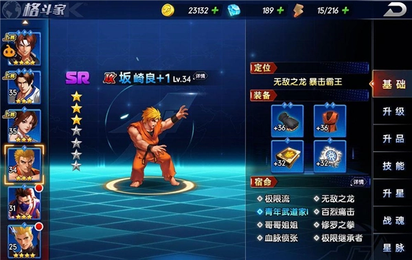 多样的横线养成线增加培养保值度,让玩家放心大胆地投入资源,适当降低换阵成本,极大培养深度的纵向养成线,也可让玩家将自己最喜欢的格斗家养至极限