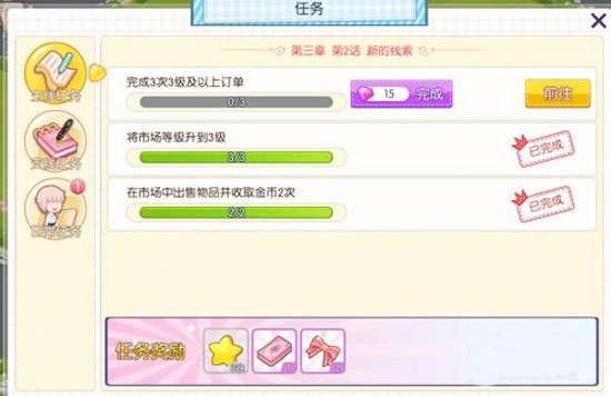 甜品店升级需要完成左边主线任务,才能获取经验。