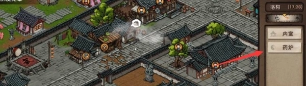 2、到达目的地,点击药炉选项,点击选择炼丹。