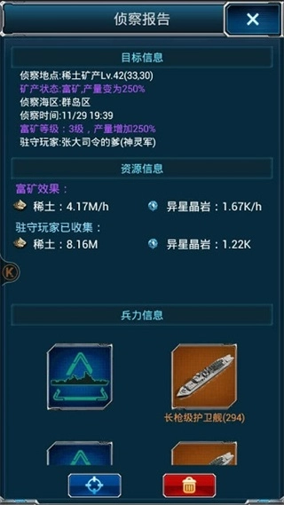 5、每种资源点分为2-50级,等级越高,资源点的防守部队越强,玩家可以通过消耗水晶侦查来判断资源点防守部队的强度