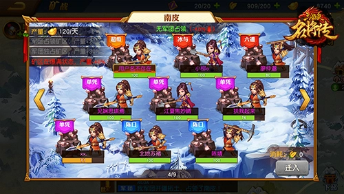 3、兵力:相当于血量,每次战斗都会损耗一定兵力,当兵力为0时会被传送回最近的主城,兵力可以使用粮草来补充。