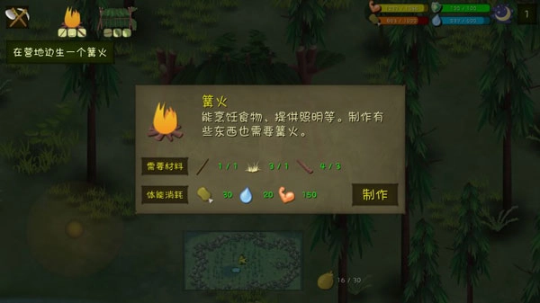 2、火是你生存的重要支柱,篝火可以烹调食物,提供照明,给你带来光明。