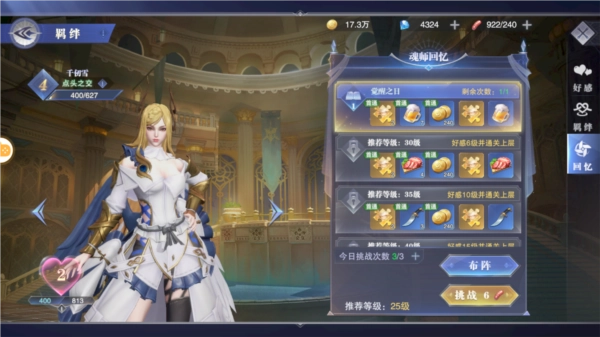 当魂师的好感度达到特定等级后,就能解锁该魂师的回忆内容。魂师回忆设有多个难度层级,会随着魂师好感等级的提升依次开放。进入回忆关卡后,需要与回忆场景中的敌人展开战斗并将其击败,胜利后可获取魂师信物和魂师礼物。魂师回忆系统设有总参与次数和单个回忆的参与次数限制,每日凌晨5点会自动刷新次数。总参与次数可以通过消耗钻石进行购买,首次成功通关某个回忆关卡时,还能获得对应的首次通关奖励。