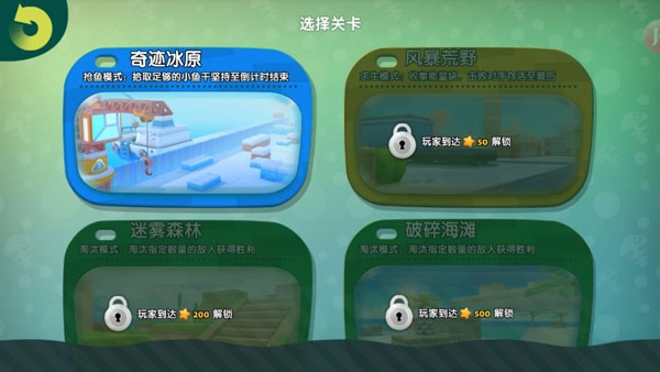 抢鱼模式:拾取足够的小鱼干,坚持至计时结束。