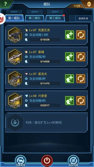 战力科技:就是讲究所里可以升级的进攻性科技,比如提升护卫舰伤害等,但是这些技能的优先级不高,推荐最后升级,前面先把可以加快基地发展的科技升级了。(解锁舰队位置的科技最优先升级)