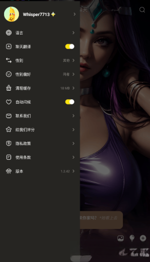 1.打开Whisper AI虚拟恋人应用,点击界面左上角的个人中心入口