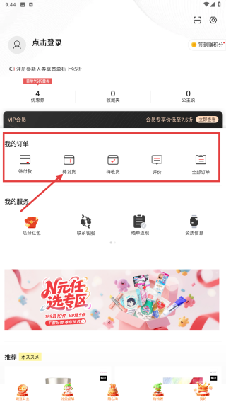3、进入个人中心,点击我的订单下的待发货选项,查看订单发货状态,点击查看发货 。