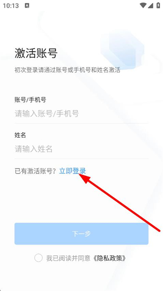 2、在激活账号页面,点击立即登录,进入浙政钉登录页面。