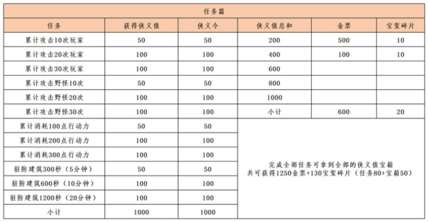 每名玩家最多可获得1000点侠义令,60名玩家就是6万点(最大),但实际战斗中,中低战力玩家往往能贡献的侠义令不多,所以好钢务必用在刀刃上,在恰当的时机开启战场技能,一决雌雄!