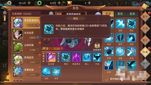 第二个推荐的是“再生”技能,它的效果是每次行动后恢复一定血量。作为法术型宠物,这类宠物的生存能力通常比较一般,而再生技能能在每次行动后回血,这可以有效提升宠物的容错率,在实战中的表现相当出色。