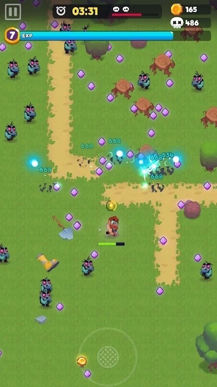 2、游戏采用垂直视角模式,玩家可通过收集水晶石兑换各类资源,以此提升自身的生存能力。